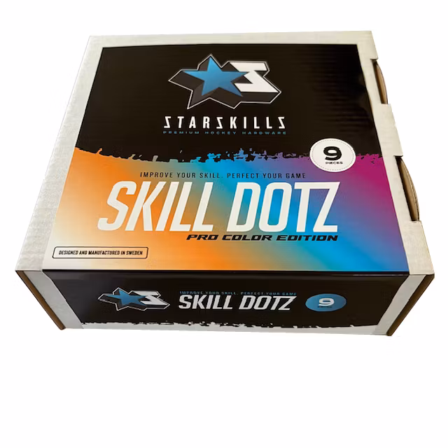 Starskills Skill Dotz Pro Color Edition är en väldigt smart produkt, med en unik & smidig lösning för att bygga egna "random" teknikbanor för Hockey & Innebandy. Det som gör denna produkt ännu bättre är att du kan utmana dig med nummer och färger med din träningspartner.